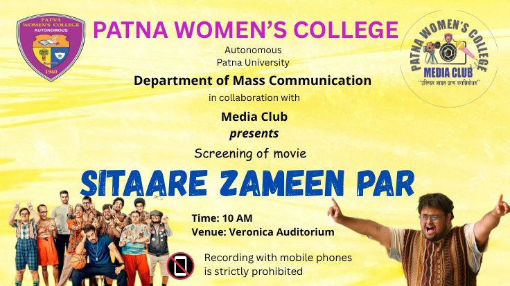 पटना विमेंस कॉलेज के जनसंचार विभाग द्वारा मीडिया क्लब के सहयोग से शनिवार को आमिर खान की बहुचर्चित फिल्म "सितारे...